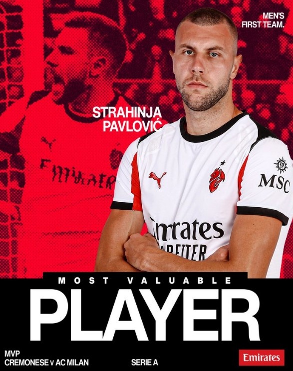 本场比赛米兰后卫帕夫洛维奇在比赛89分钟打进关键进球,赛后他也当选米兰官方评选出的本场队内最佳球员。米兰官推配文夸赞道:“他在攻防两端都起到决定性作用!”
